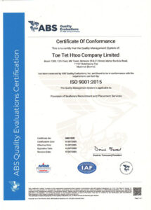 - Management System Standards ISO 9001:2015 (Complying MLC 2006) ,Certificate No.TH020116 by